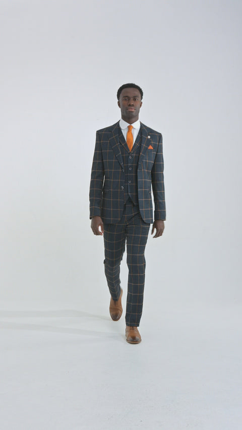 - Męski 3-częściowy garnitur wełniany w kratkę w jodełkę