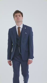 Trzyczęściowy garnitur męski James w kolorze granatowym, dopasowany do sylwetki